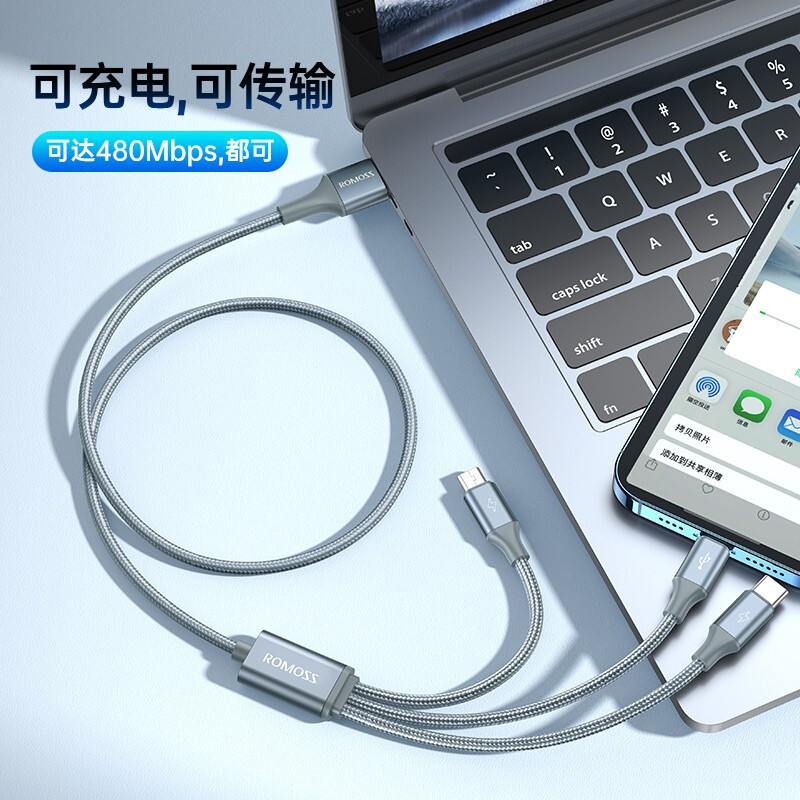 Romoss Data Cable C-C Compatible with Apple and Huawei, One-To-Three Mobile Phone Android Tpc Fast Charging Cable Digital
