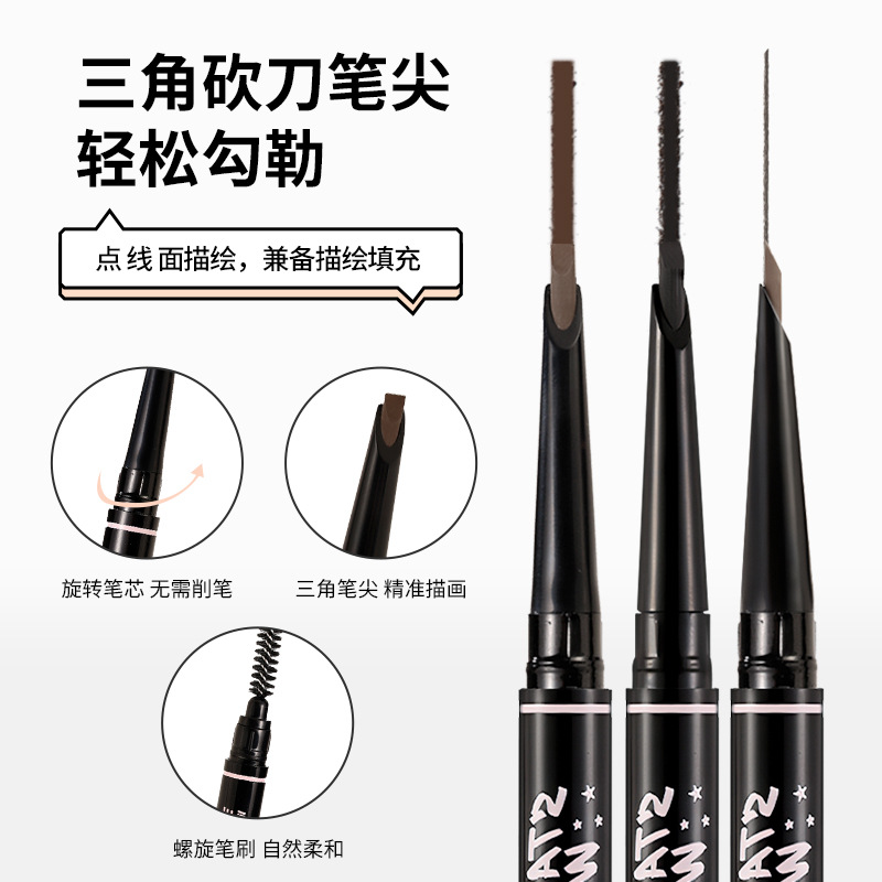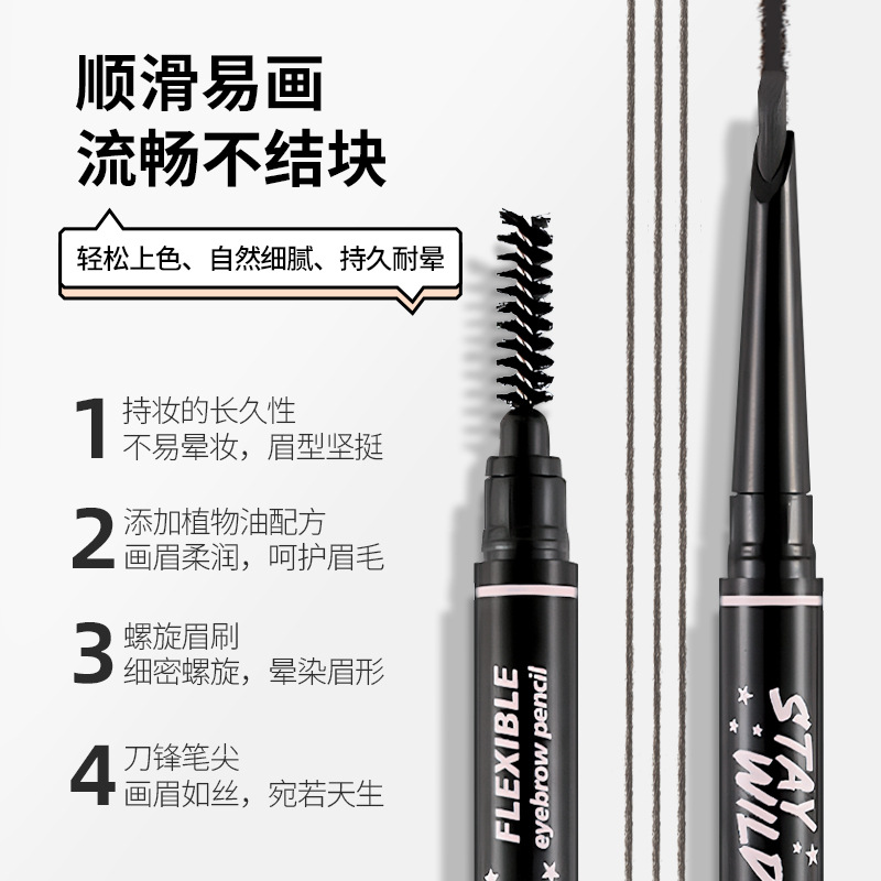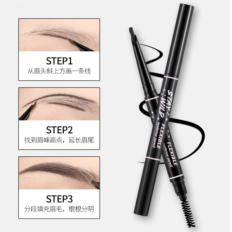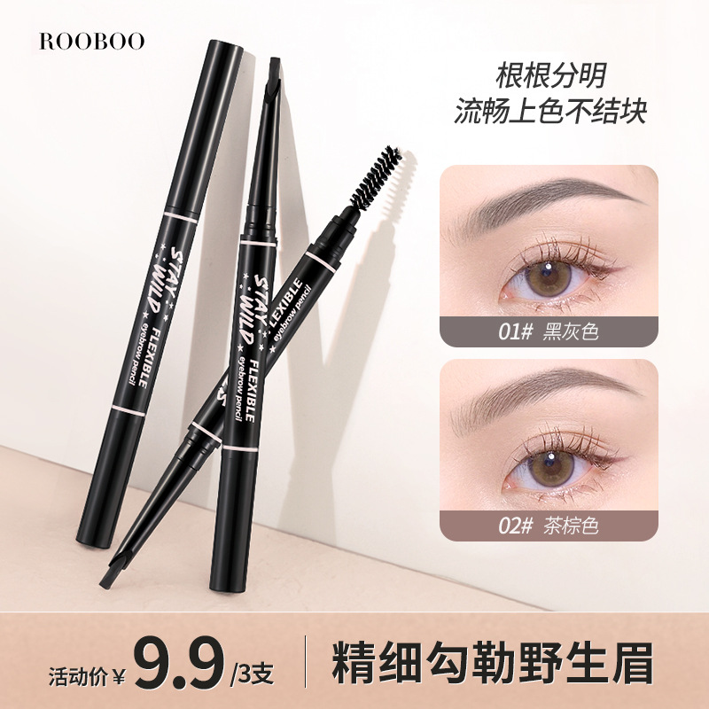 Rooboo Eyebrow Pen Bevel Chopper Automatic Rotating Waterproof Sweat-proof Wild Eyebrow Flu Double-headed Pen Lasting
