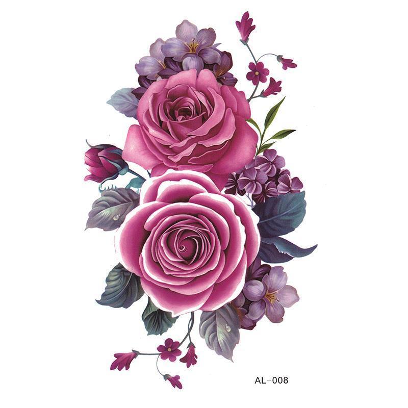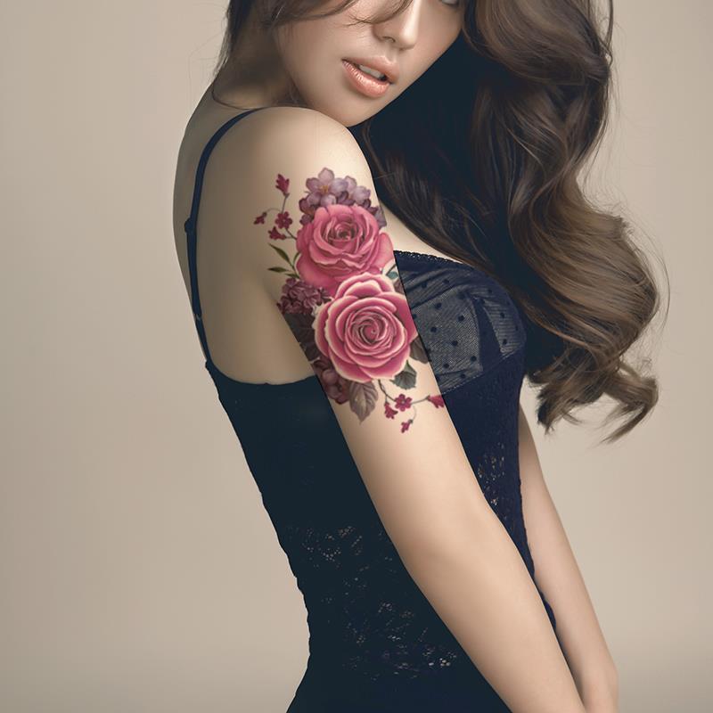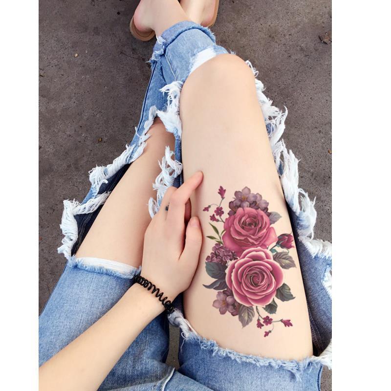 Rose Tattoo Sticker Large Picture Waterproof Female Long-Lasting Sexy Belly Caesarean Section Scar Cover Body Painting Photo