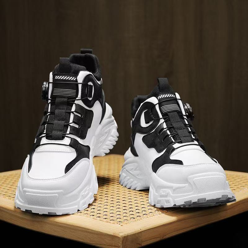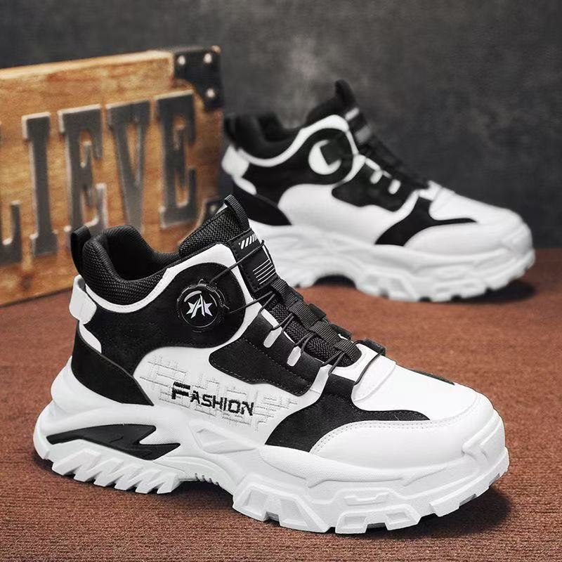Rotating Button Autumn and Winter New Height-Increasing Sports Shoes High-Top Casual Men's Shoes Thick-Soled Outdoor Workwear Boots for Men
