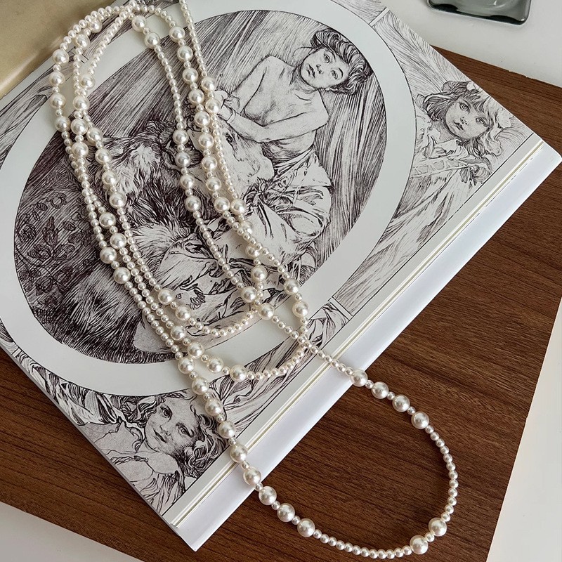 S Home Australia White Long Pearl Necklace Women's Woolen Chain High-grade 2024 New Double-layer Multi-layer Stacked Necklace Chain