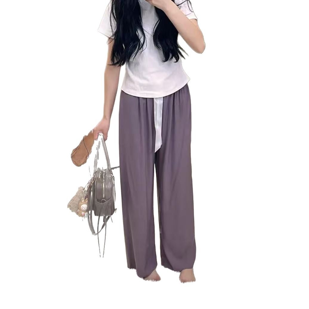 S Long Cotton Silk Pajama Pants Women's Summer plus size Loose Pregnant Women's Pajamas Women's Summer Cotton Thin Wide Leg Pants
