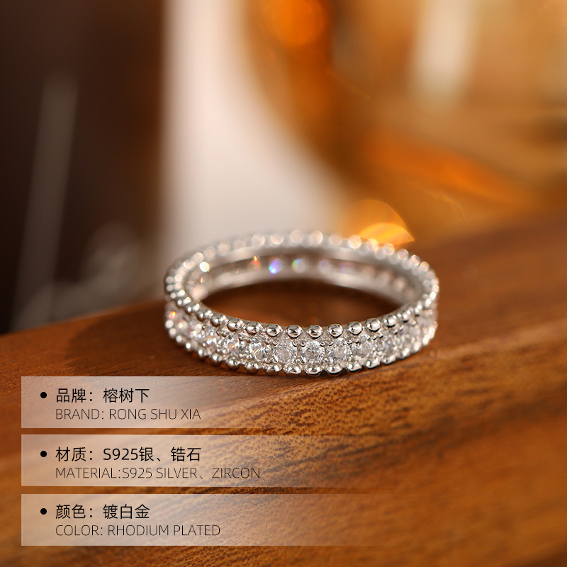 S925 Silver Light Luxury Row Diamond Bead Edge Ring High Quality Gypsophila Internet Celebrity Ins Couple Ring Ring