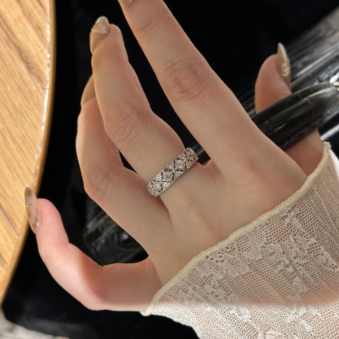 S925 Sterling Silver Light Luxury Diamond Lace Carved Hollow Diamond Ring Geometric Diamond High Carbon Diamond Ring Women's Exquisite