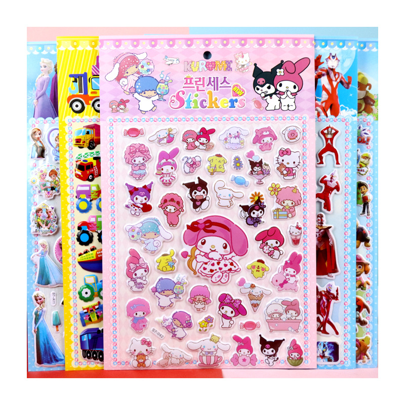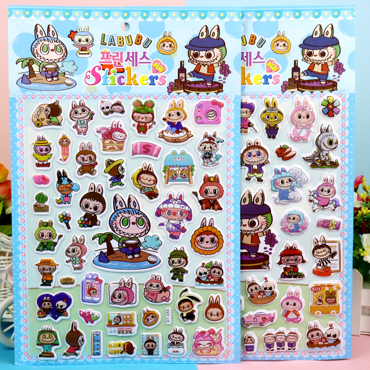 Sanrio Kuromi Melody 3D Stickers DIY Children's Labubu Capibara Pvc Bubble Stickers