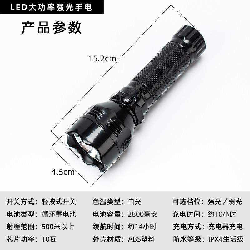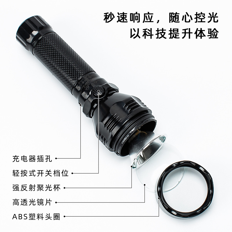 Sasen Removable Battery Flashlight 18650 Lithium Flashlight Strong Light Charging with Charger Outdoor Night Fishing