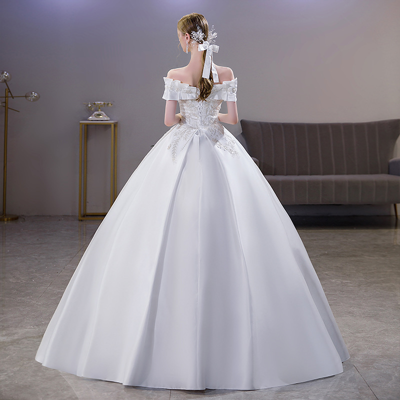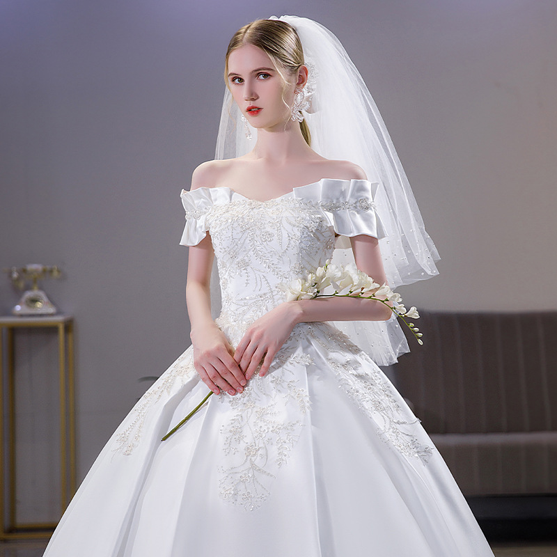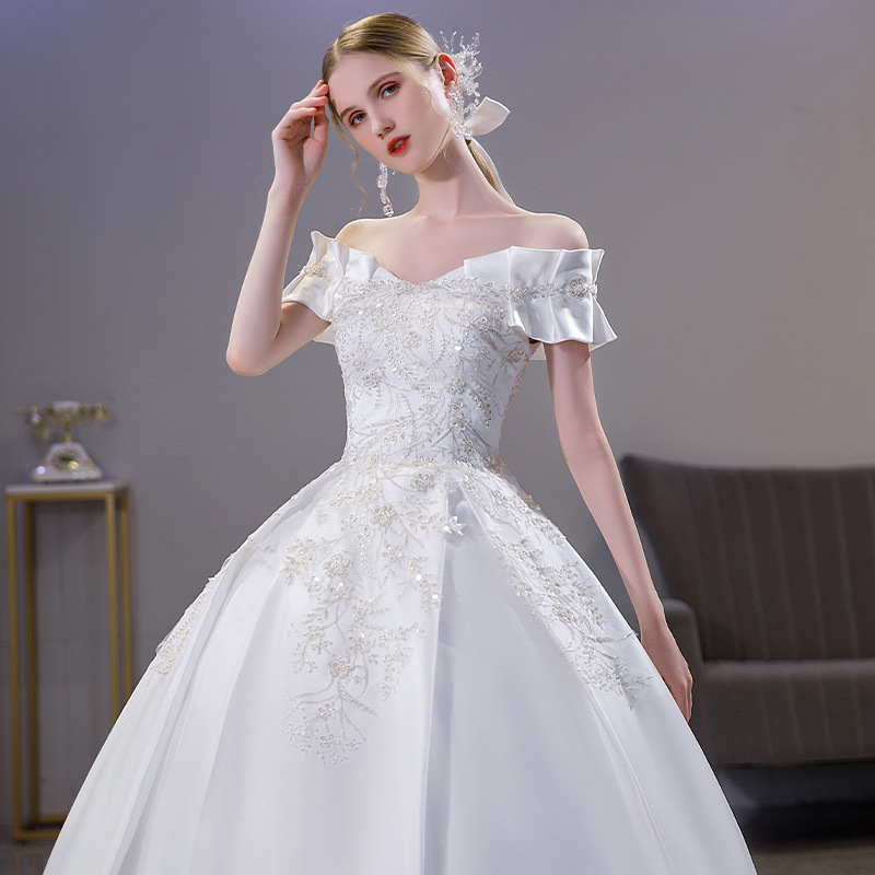 Satin Wedding Dress for Women 2025 New Bride Palace Style French Simple Super Fairy One-Shoulder Princess Style Main Wedding Dress
