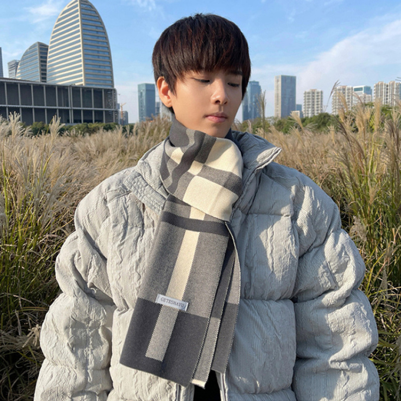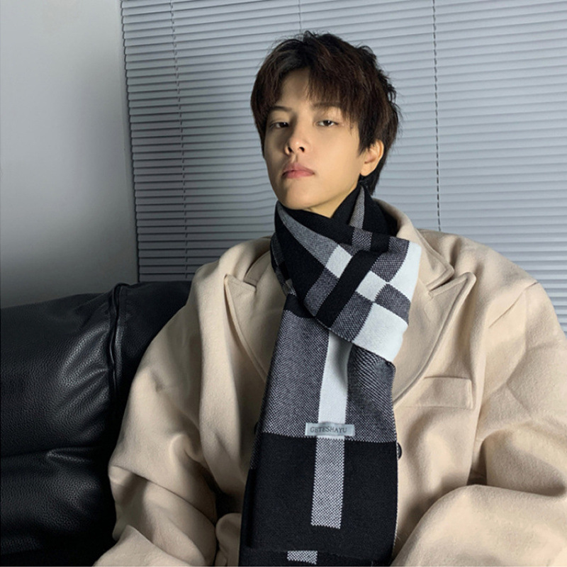 Scarf Men's Winter Warm Korean Style Versatile Student Youth Winter Gift Birthday Gift Plaid Scarf Men's Trendy