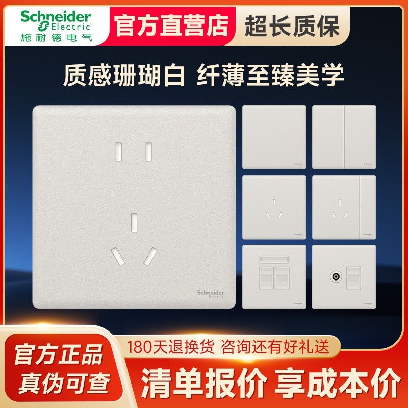 Schneider Electric Zhenbo Series Coral White Wall Socket Switch Panel Type 86 Five-Hole Frameless Ultra-Thin