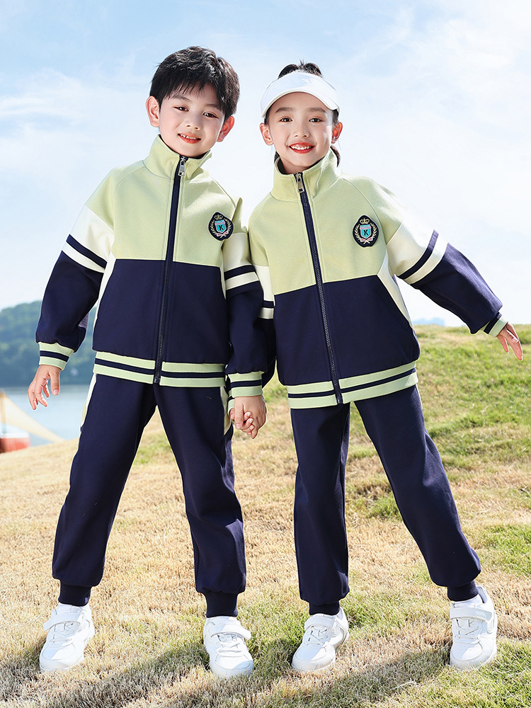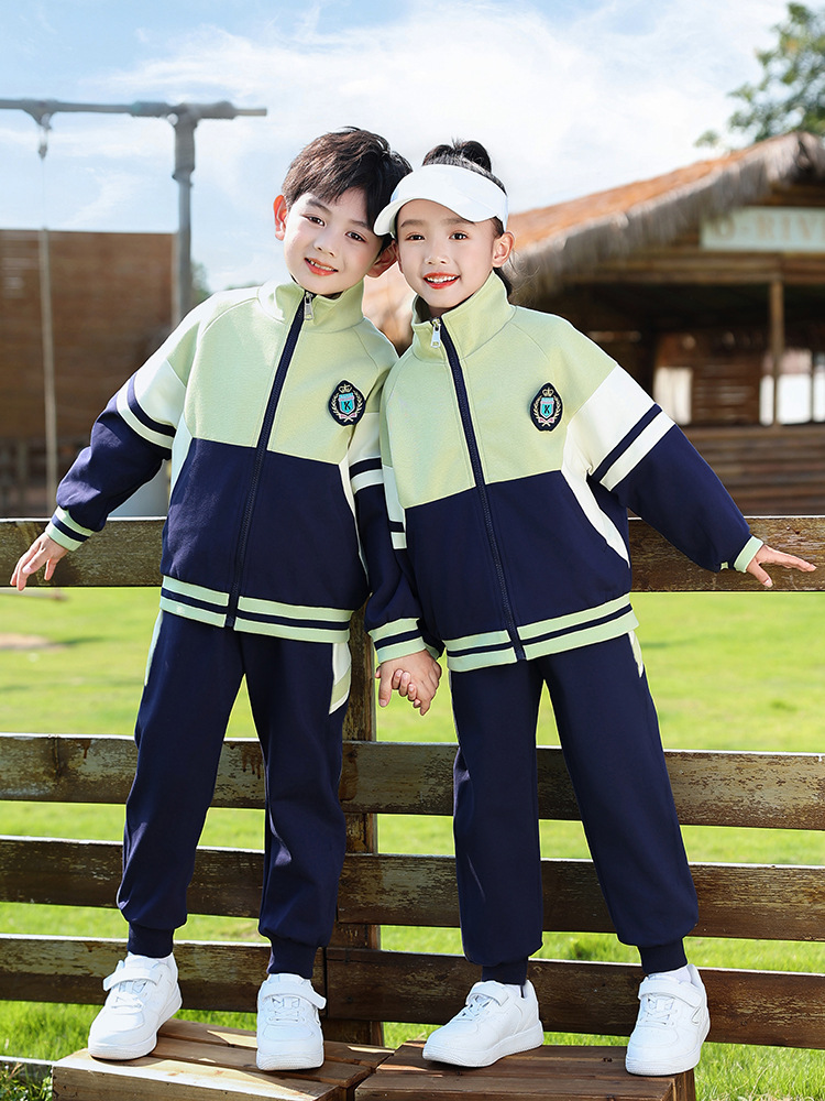 School uniform for primary and secondary school students kindergarten uniform class uniform older children Sportswear children's group performance uniform green suit