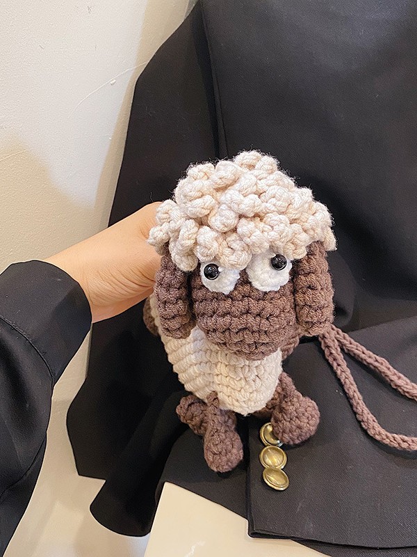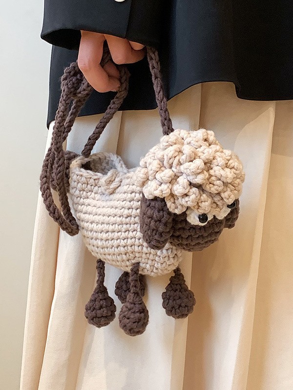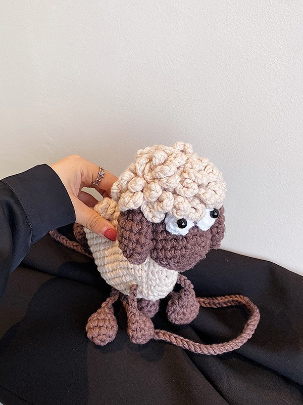 Sean Knitted Wool Bag Handmade Woven Bag Cute Cartoon Lamb Woven Bag Shoulder Crossbody Bag Finished for Women