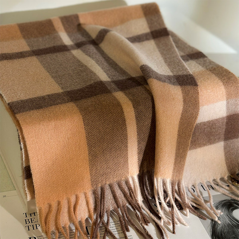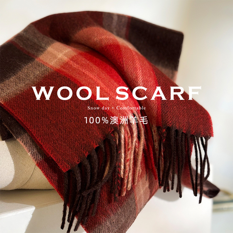 Selected 100% Australian Wool Scarf for Women, Export Quality Autumn and Winter Simple Plaid Classic British Long Scarf for Men