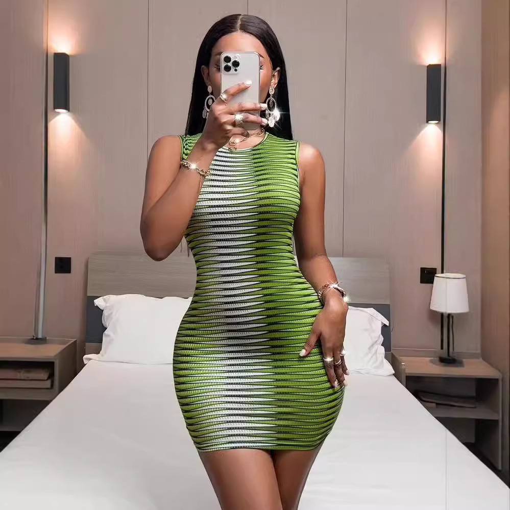 African Skirt Female Sexy New Boutique Milk Silk Printed Elastic Slim Fashion Dress