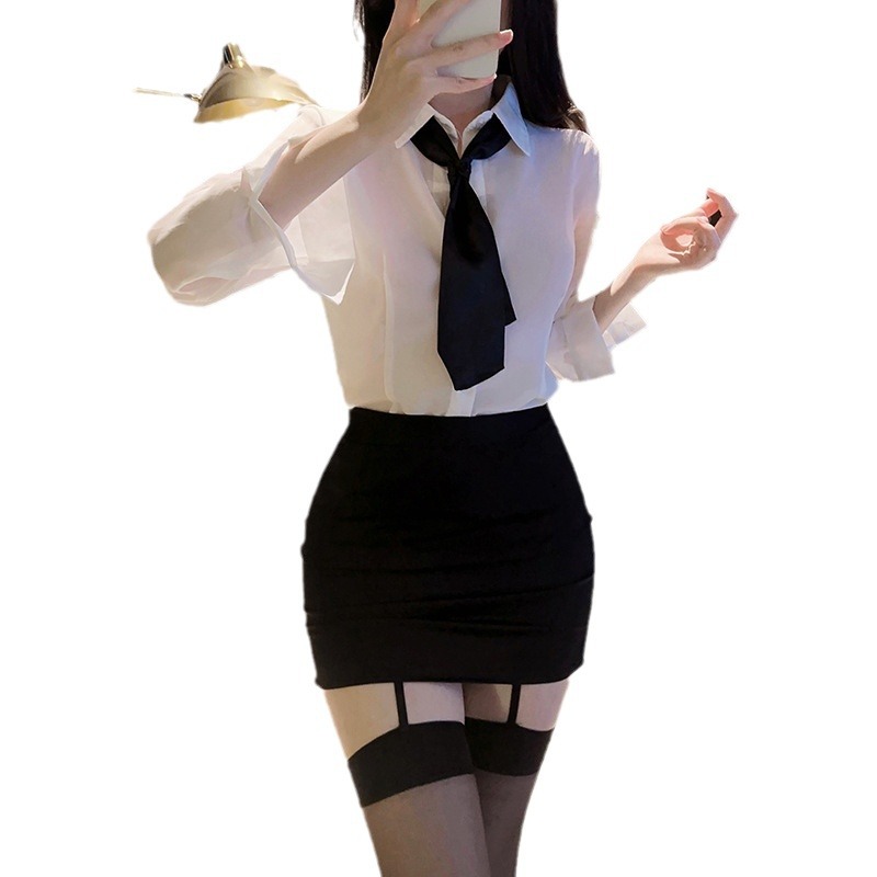 Sexy female secretary hip skirt sexy lingerie workplace style shirt seductive teacher nightclub suit one-piece delivery female