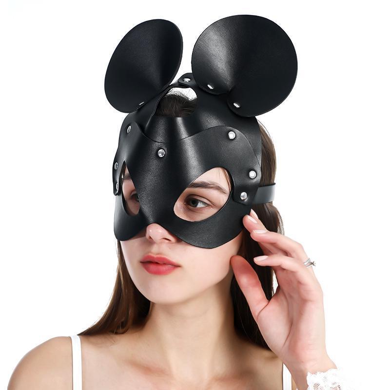 Sexy Harness Cat Ears Faux Leather Mask Girls Cosplay Costume Men Women Exotic Toys