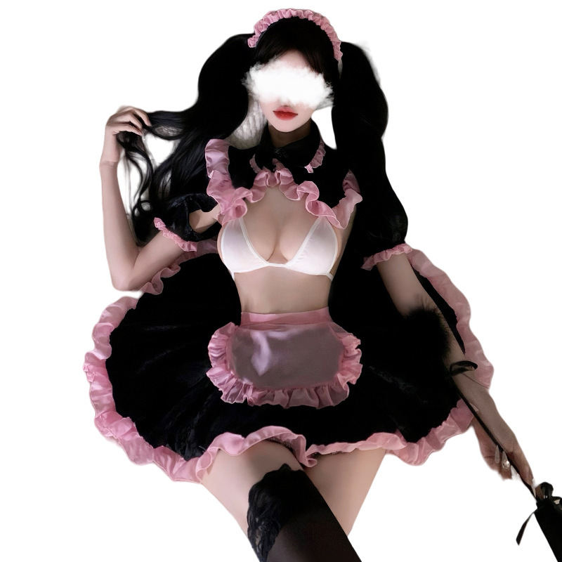 Sexy Lingerie Cosplay Cos Maid Maid Suit Sexy Semi-Transparent Chiffon Cute Girl Nightgown 1575 #