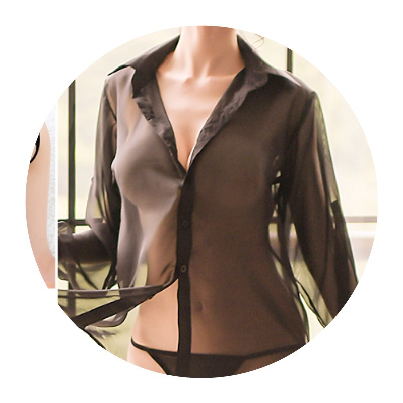 Sexy lingerie women's chiffon long sleeve passionate transparent shirt sexy temptation pure office uniform role play