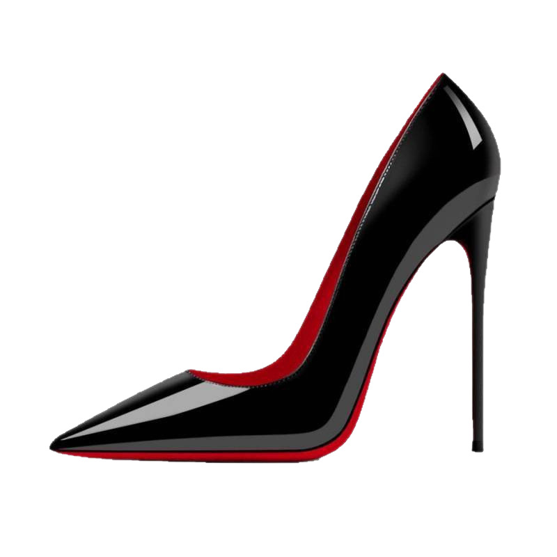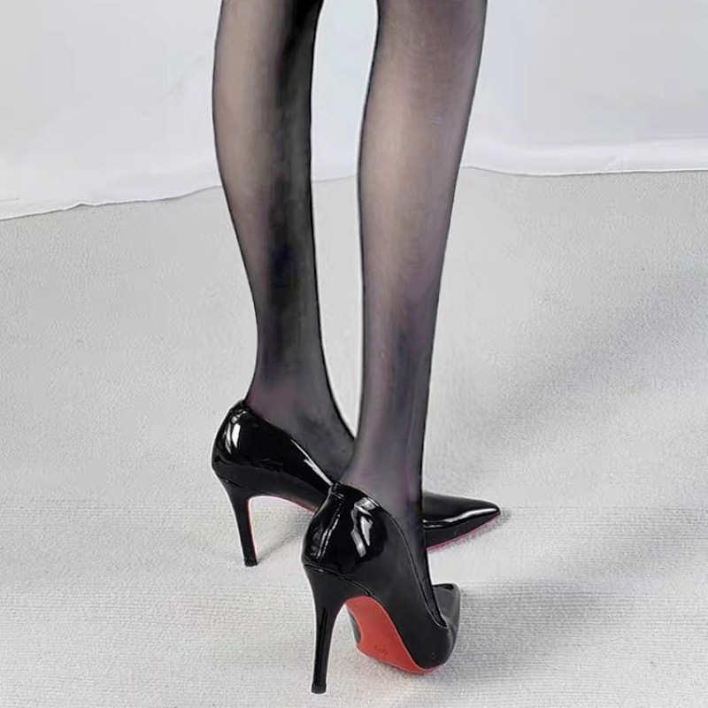 Sexy Red-Soled High-Heeled Shoes for Women, Professional Stiletto Heels, New Spring Black Patent Leather Side Hollow Pointed Toe Ladies