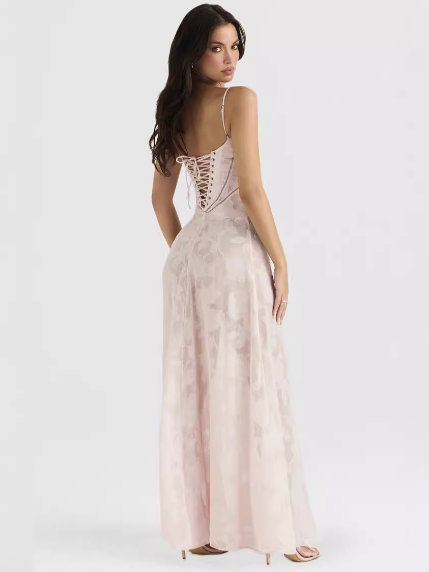 Sexy Sleeveless Strap Backless dress Women's Chiffon Embroidered Square Collar Ball Evening Dress dress