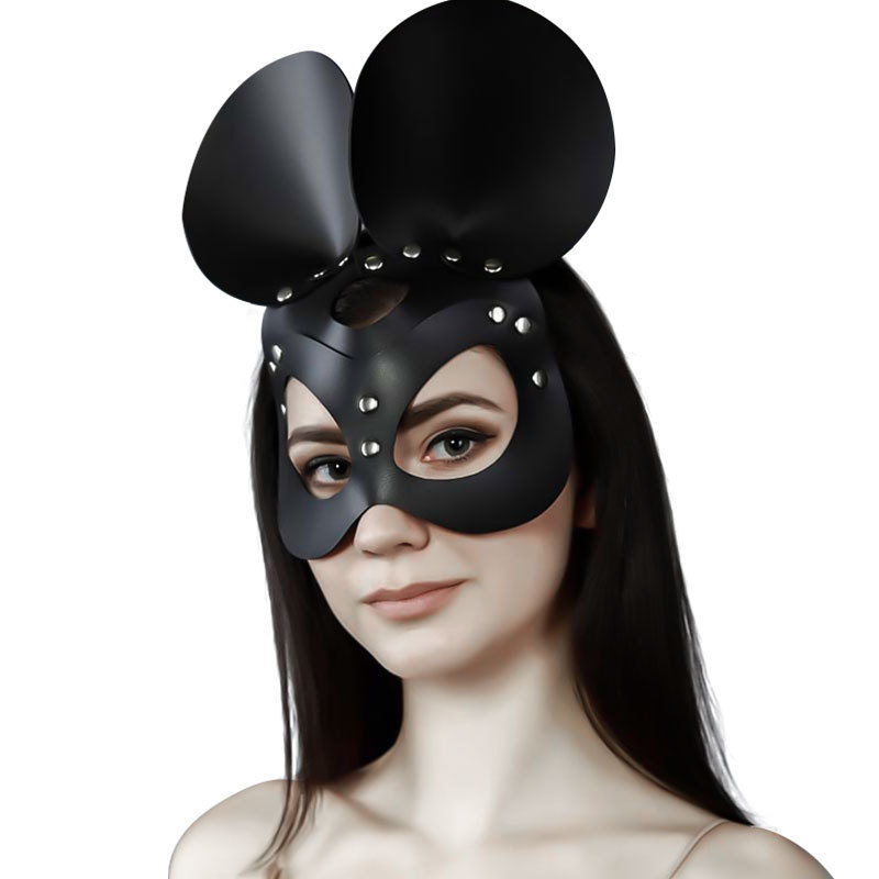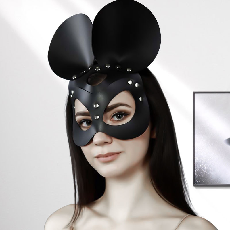 Sexy Harness Cat Ears Faux Leather Mask Playing Costume Men Women Exotic Toy