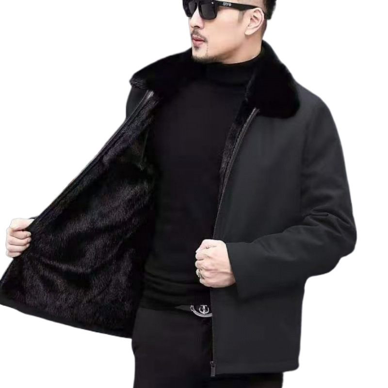 Shanli Dadini Overcome Men's Mink Coat Whole Mink Coat Parksuit for Middle-aged and Elderly Warm Short Thickened Fur