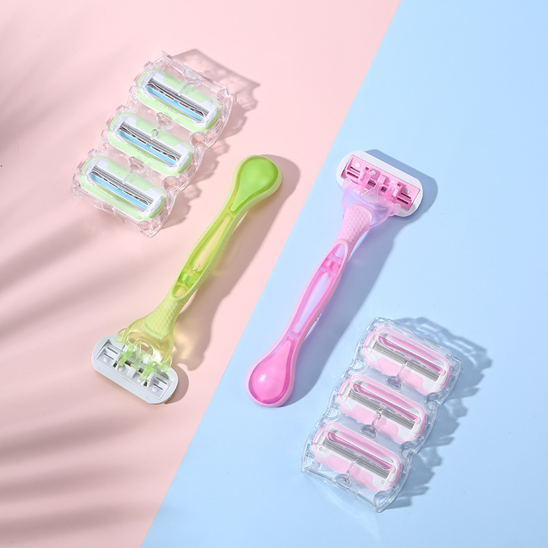 Shaving Razor for Shaving Pubic Hair, Underarms, and Legs, with Replaceable Blades, Three-Blade Replacement Heads