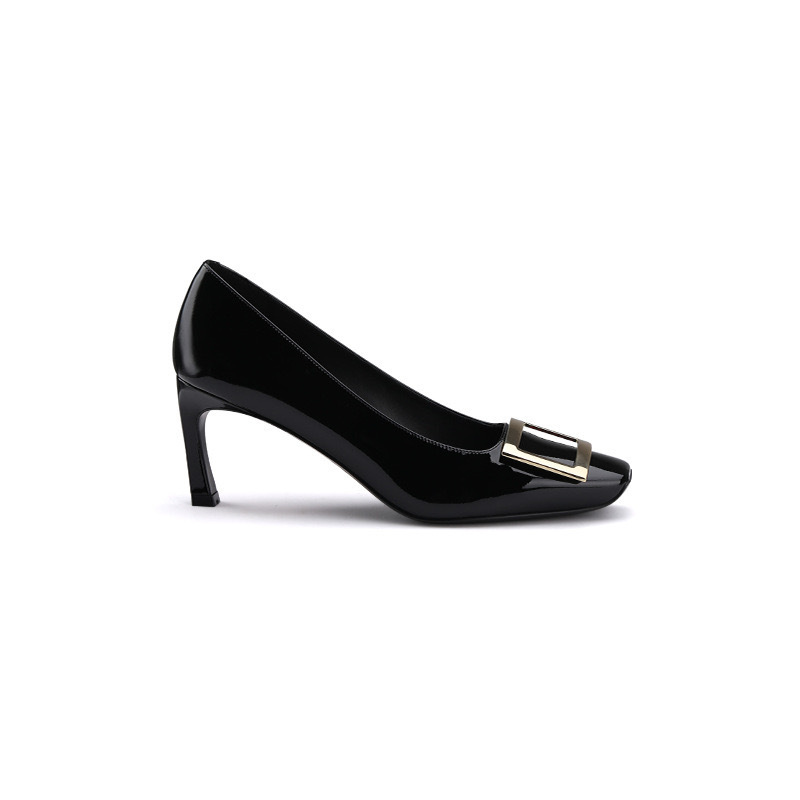 Sheepskin Version ~ Genuine Leather Classic Square Buckle Patent Leather Stiletto Ol Commuter High Heels Women's Wedding Shoes Gentle Style Evening Shoes