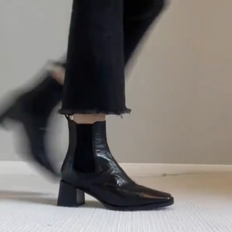 Sheepskin Version ~ Genuine Leather Thick Heel Retro British Style Thick Heel Thin Boots Women's Short Boots Single Boots Chelsea Boots Martin Boots