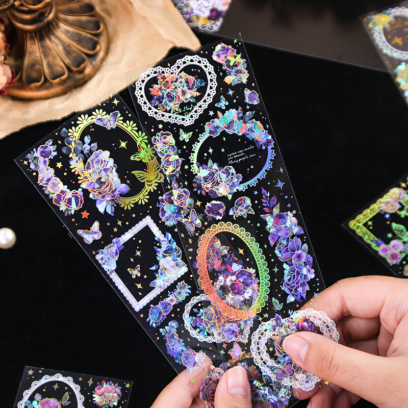 Shell light three-dimensional gilding hand account sticker rose love series ins retro romantic hemp laser gilding relief