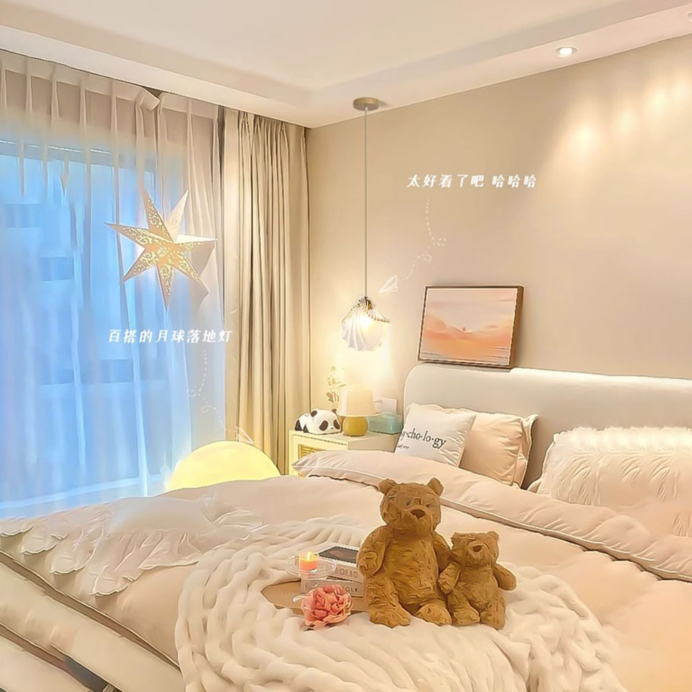 Shell Small Chandelier Light French Sweet Bedroom Bedside Lamp Simple Modern Popular Cream Style Living Room Background Wall Lamp