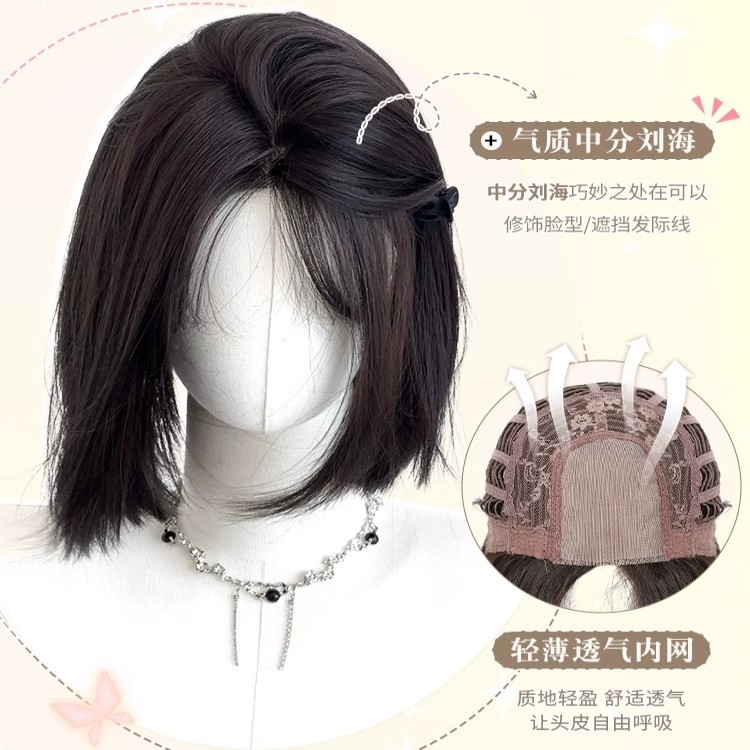 Short Bob Wig for Women with Natural Age-Reducing Effect, Summer Thin Style with Full Lace Front and Side Bangs