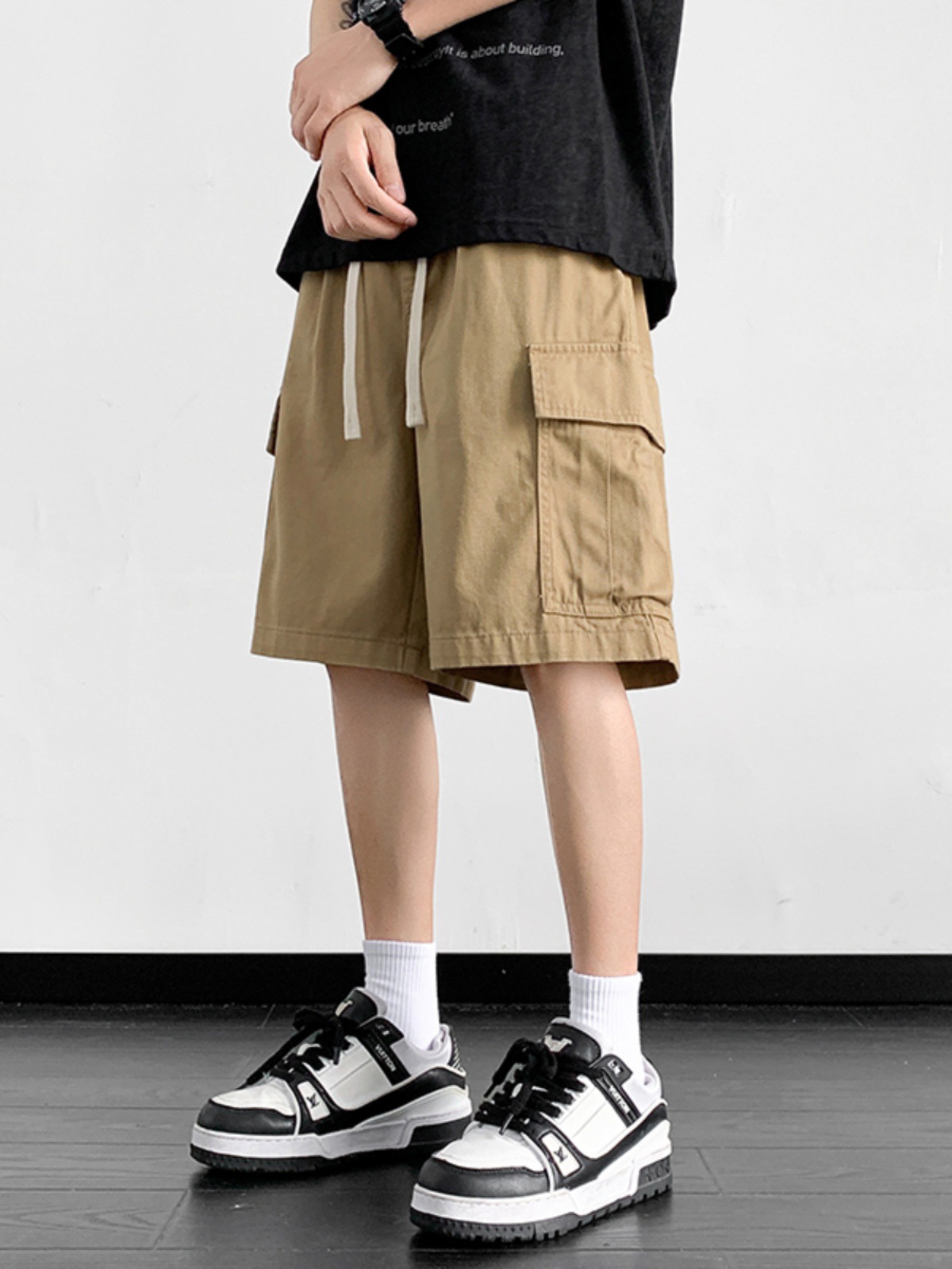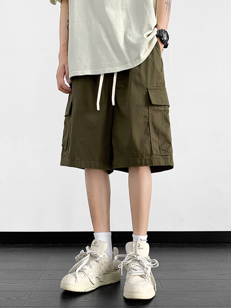 Shorts Men's Summer Fashionable American Style Army Green Overalls Thin Loose Shorts Casual Straight Cotton Pants