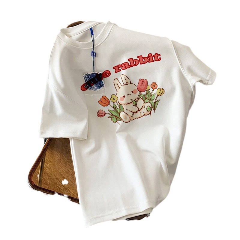 Shoulder cotton short-sleeved T-shirt women's ins fashion all-match age-reducing white top bottoming shirt spring and summer grade 2024