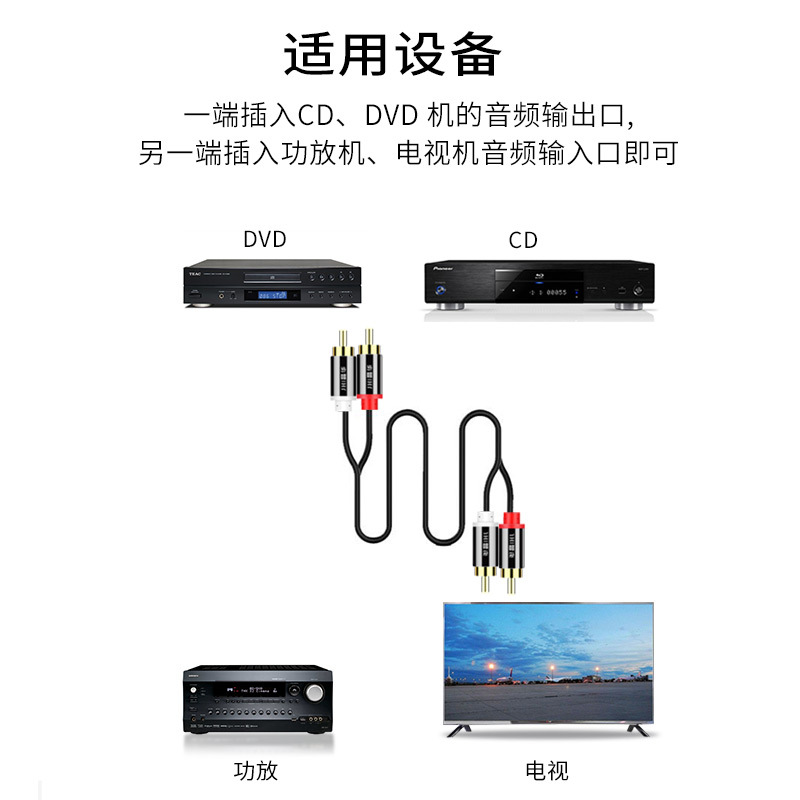 Shuanglian Two-to-two Audio Cable 2RCA to 2RCA Cable Tv Audio Cable AV Audio and Video Cable