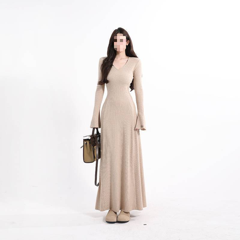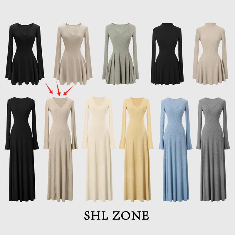 Shuhulei Tea Scented Croissant Series Collection Long-Sleeved Dress Knitted Skirt Slimming Look Bottoming Skirt Autumn and Winter New Style