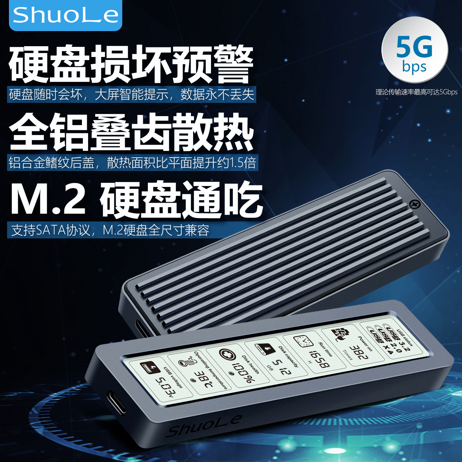 Shuole M.2 Protective Cover High-Speed Type-C Smart Screen Display Solid State Drive Box Universal Sata Protocol