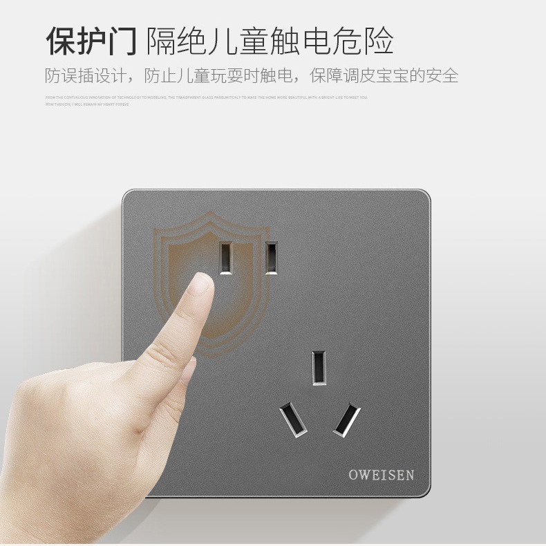 Silver gray switch socket five-hole wall panel 86 type household concealed power supply two-three socket one single double control