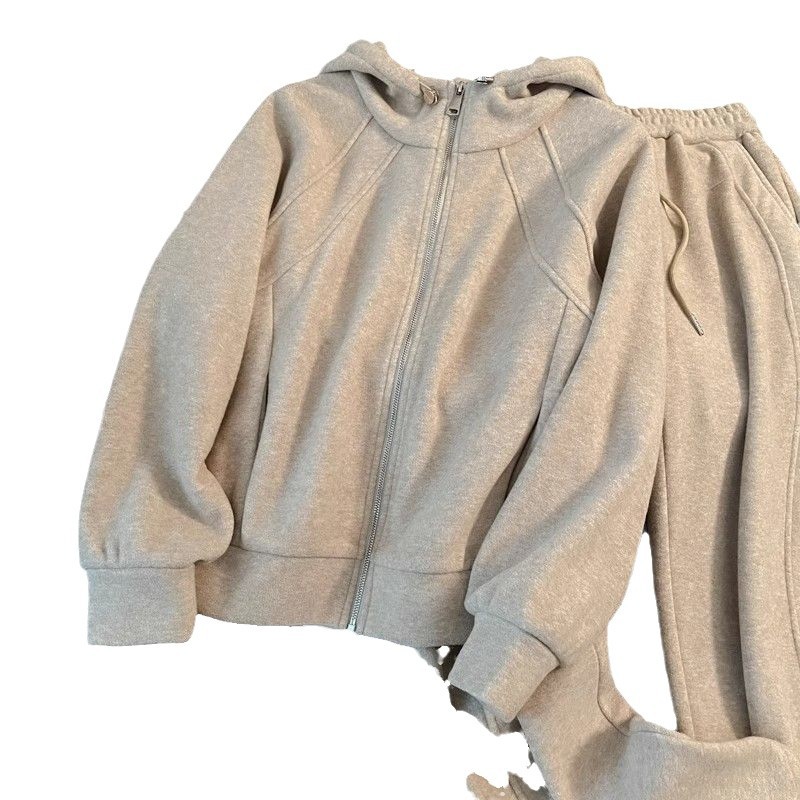 Simon Lena European High-end Hooded Sweatshirt suit Women's Spring and Autumn Fashionable Western-style fleece-lined Casual Sportswear Wide-leg