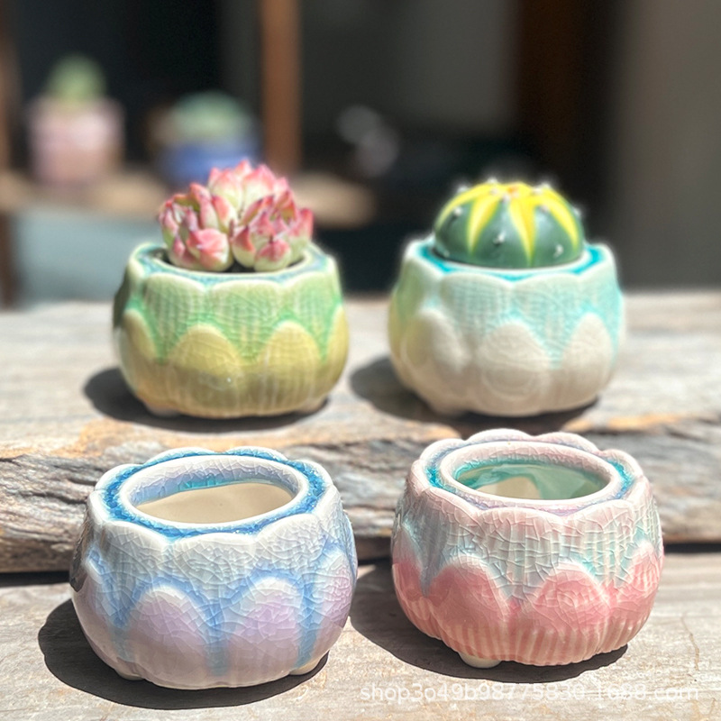 Simple Nordic Style Succulent Flower Pot Small Lotus Gradient Color Creative Landscape Container Potted Flower Pot Manufacturer Wholesale