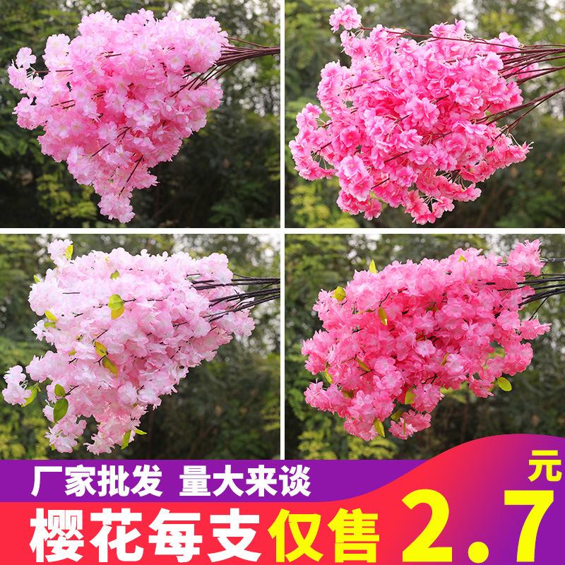 Simulated Cherry Blossom Branch Wedding Pear Peach Blossom Tree Plastic Fake Flower Rattan Decoration Ceiling Silk Flower Indoor Living Room Floor