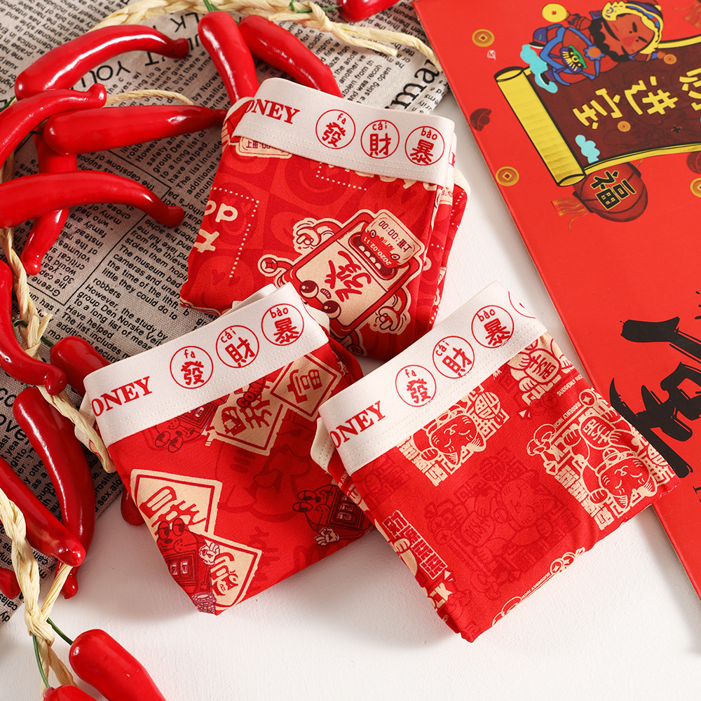 [Single Pack] 2025 Ben Life Red Festive Men's Pure Cotton Underwear Mid-Waist Fashion Youth Trendy Men's Lucky