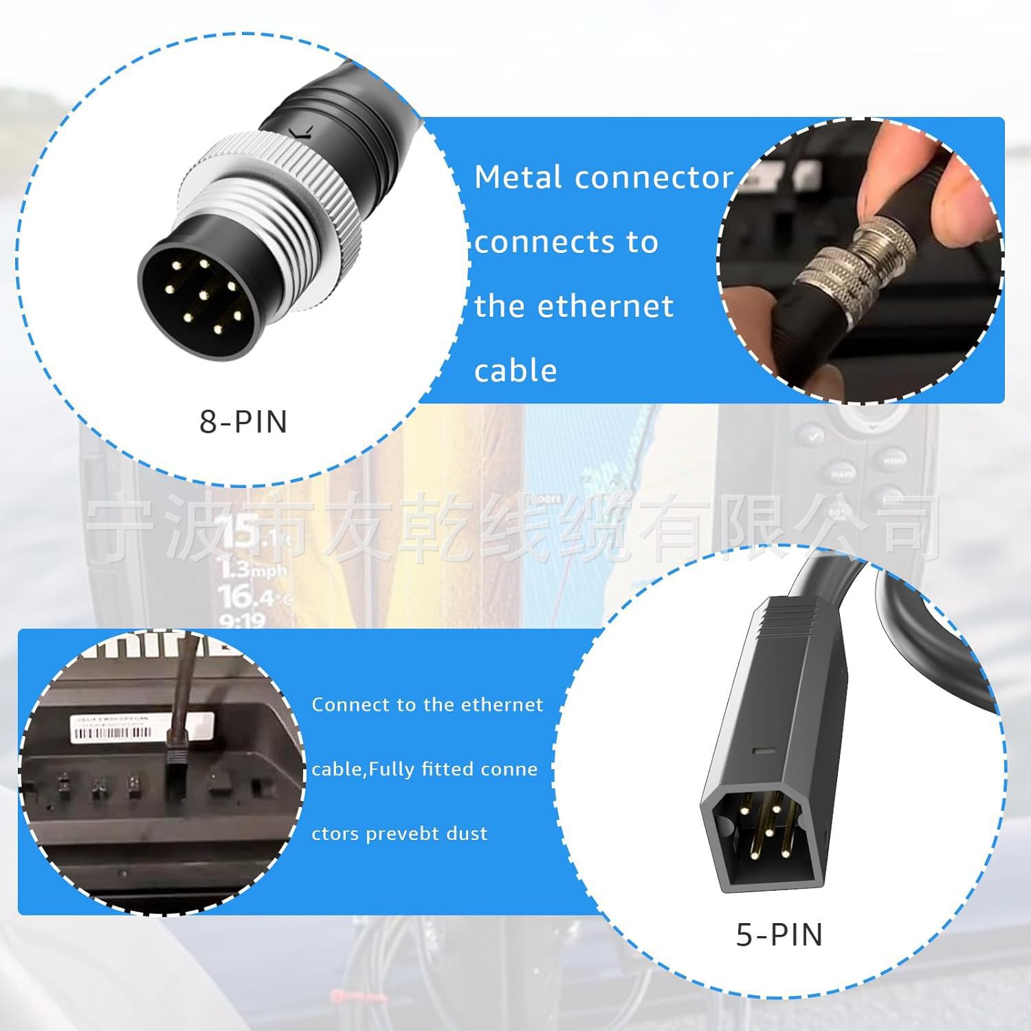 Sixcow 1852074 Mkr-Us2-14 8-Pin Adapter Cable, Universal Sonar 2 Adapter Plug