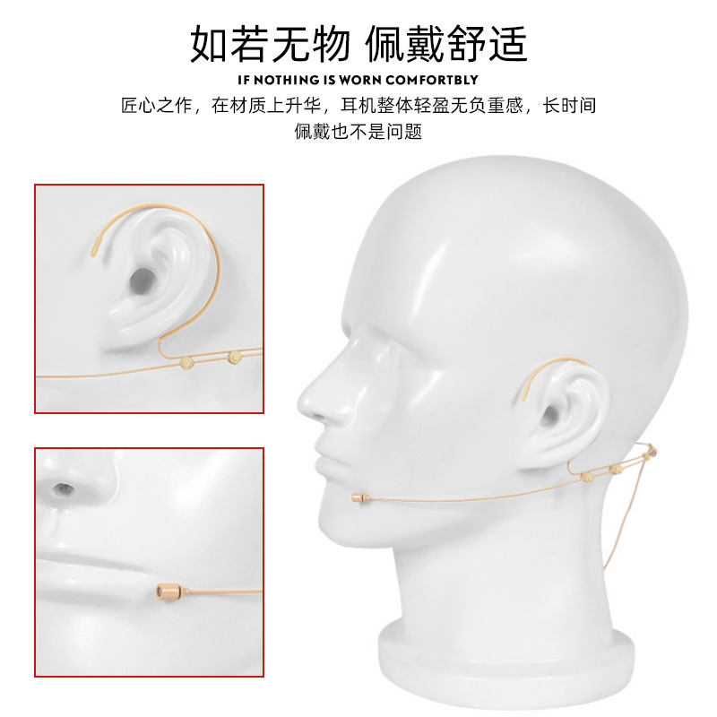Skin color black head-mounted microphone loudspeaker with invisible ear-hanging condenser tour guide microphone collar clip