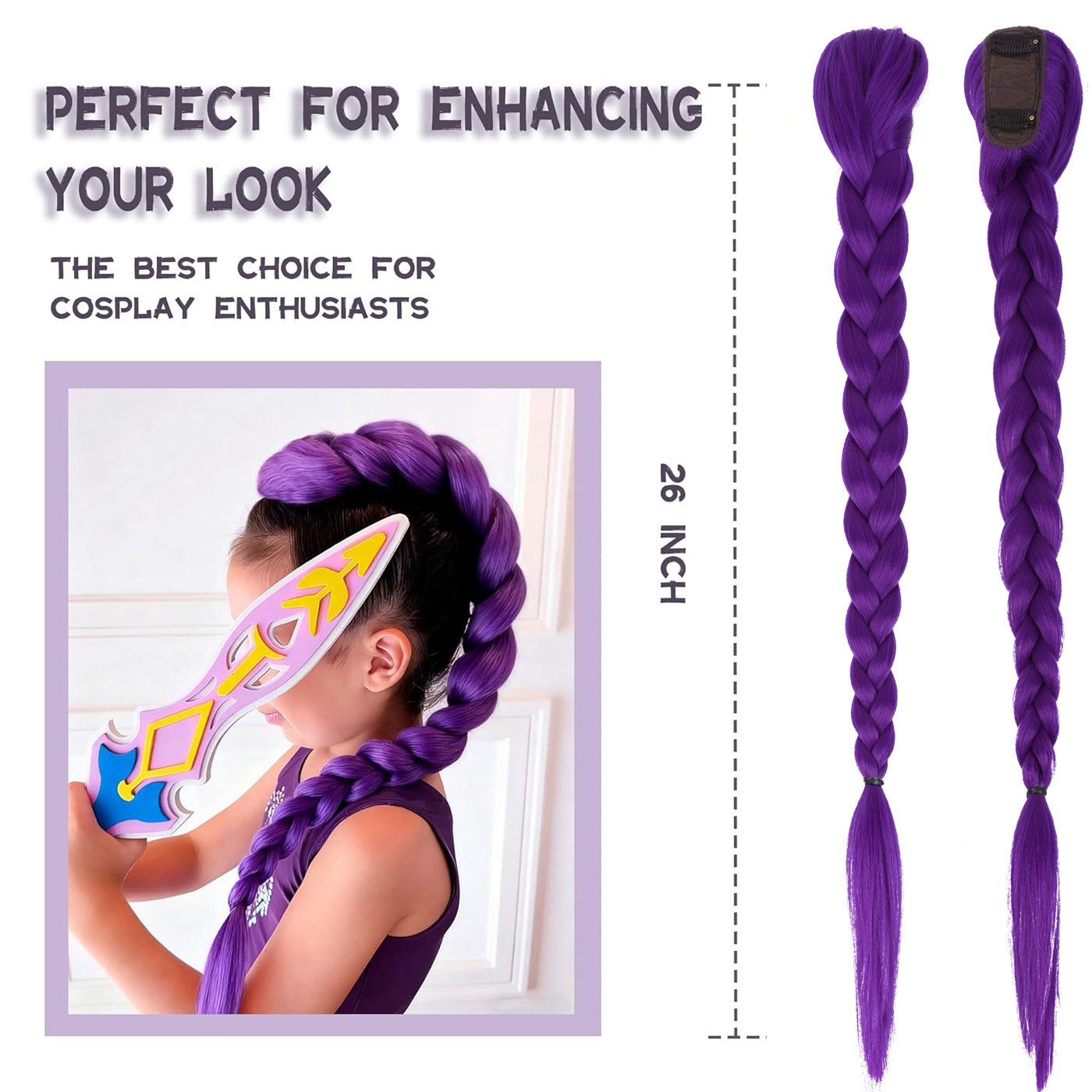 Skpop Hunter Girls Group Cosplay Wig Children's Style Rumi Purple Braids Twist Braids Clip Ponytail Hair Accessories