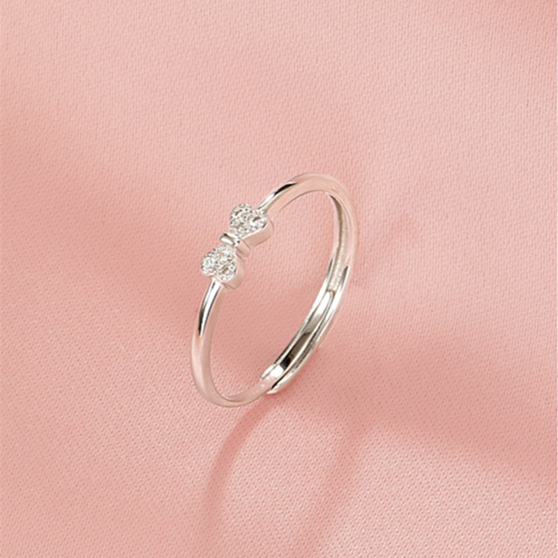 Small Broken Diamond Bow Ring Light Luxury Niche Fine 925 Silver Plated High-grade Elegant Fashion Finger Ring