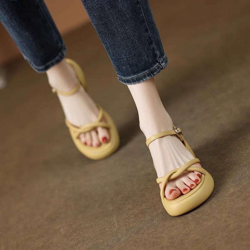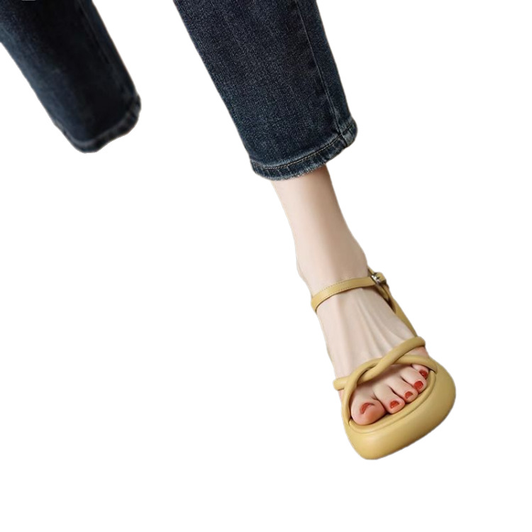 Small Height-Heeled Sandals for Women 2025 Summer New Style Simple Thick Heel Soft Sole One-Line Thick-Soled Roman Shoes