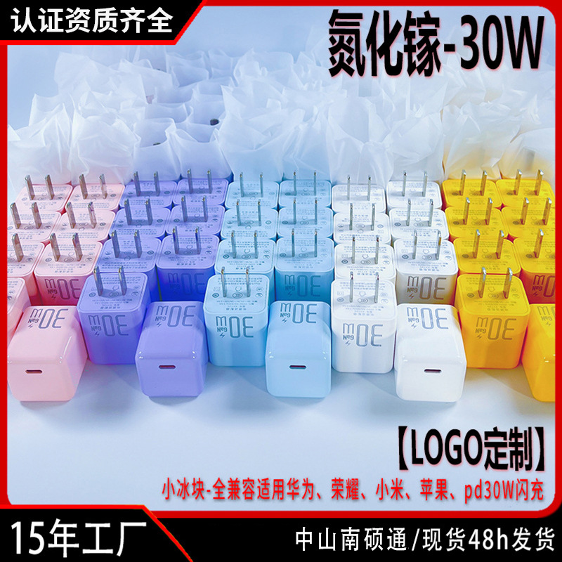 Small Ice Cube Pd30W Is Suitable for Apple 16 Pd Charger Head Iphone15 Gallium Nitride 20W Mobile Phone Fast Charging