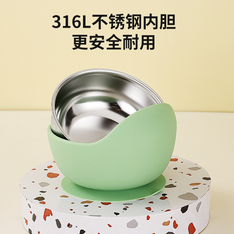Snail Bowl Baby Food Bowl Stainless Steel Inner Silicone Bowl Children's Drop-resistant Suction Bowl Baby Feeding Tableware