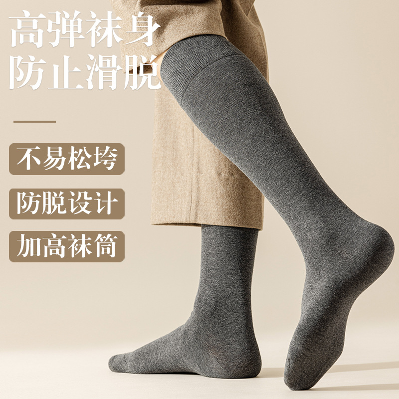 Socks men's stockings autumn and winter stockings solid color cotton socks high socks winter calf socks extended socks men's socks