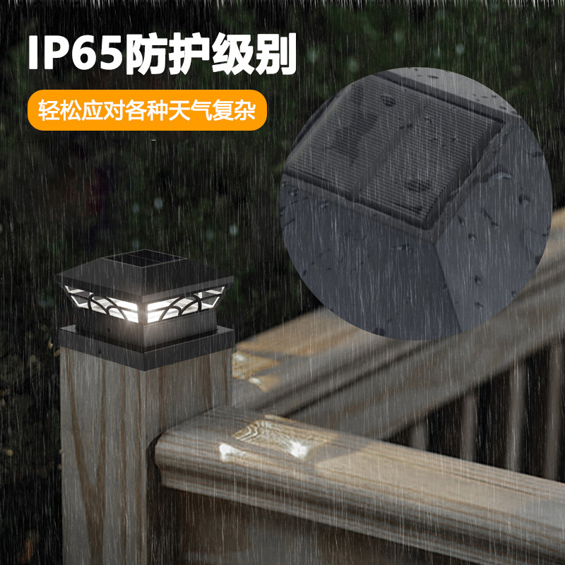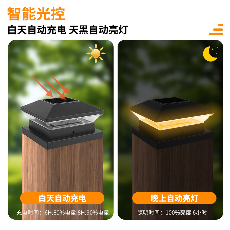 Solar Column Lamp 8Led Two-Color Warm House Garden Fence Column Lamp Cross-Border Outdoor Courtyard Column Lamp